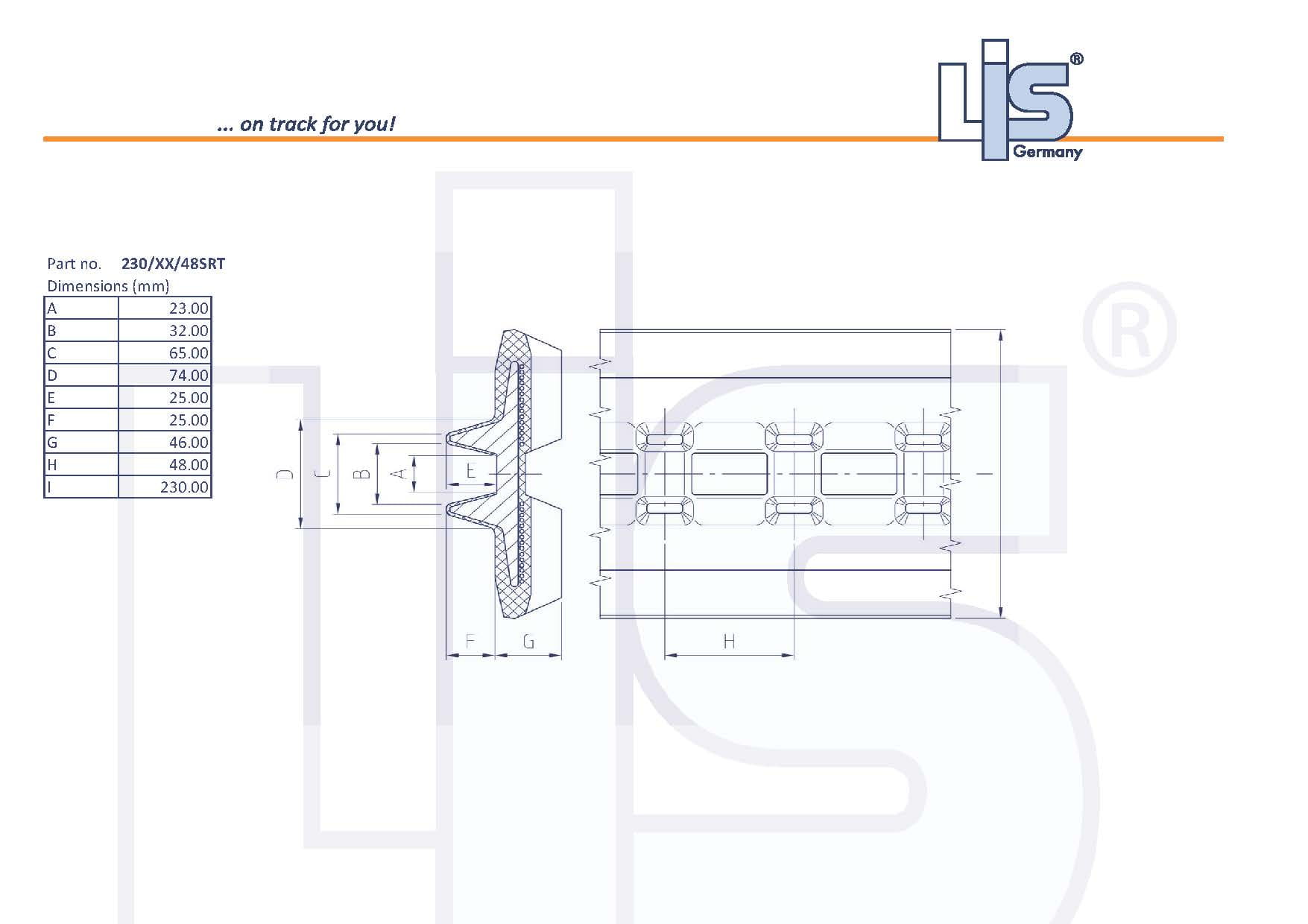| Informacje o produkcie | Szerokość: 230mm, Liczba ogniw: 72, Podziałka: 48mm, SRT = wersja standardowa |